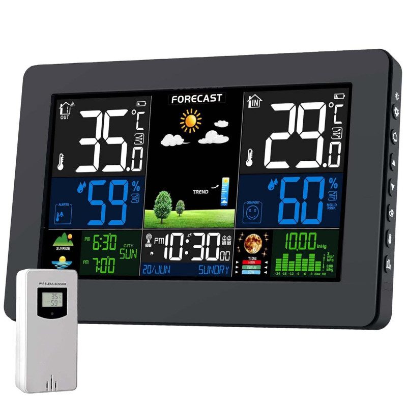 Метеостанція VOKSUN з бездротовим датчиком: Кольоровий РК-дисплей, барометр та фази місяця